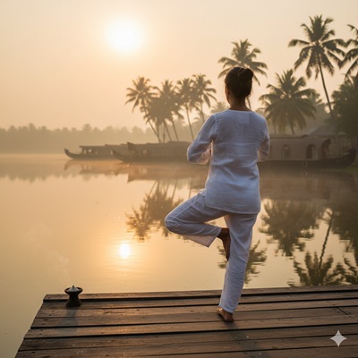 Align your breath with the rhythm of the backwaters through guided Yoga sessions designed for mental clarity and physical flexibility.